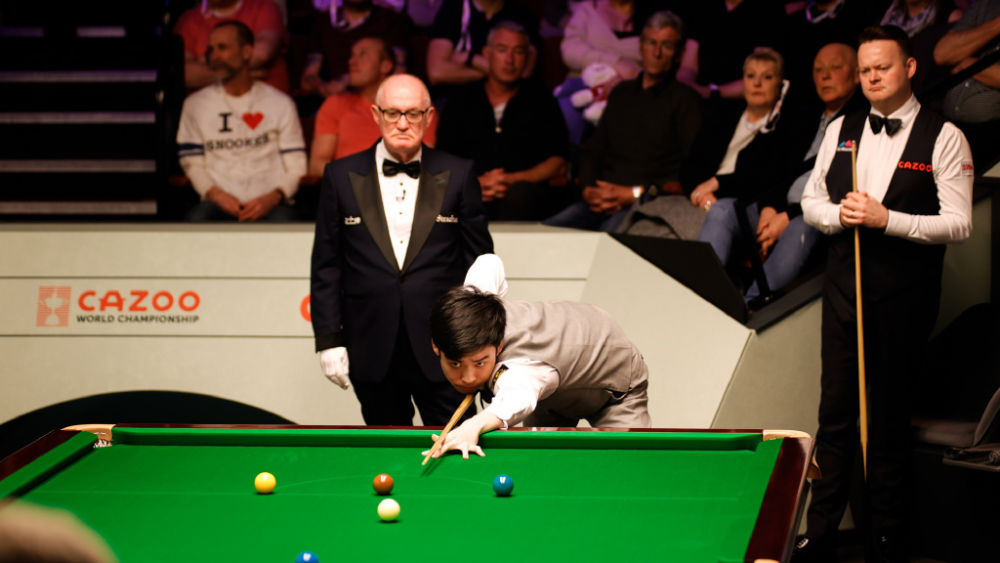 中国选手斯佳辉在与墨菲的比赛中。图片来自世界斯诺克巡回赛社交媒体官方账号