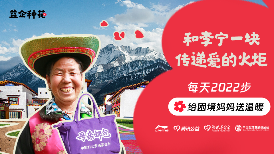 2022年春节,李宁公司携手腾讯公益、中国妇女发展基金会共同发起“一块走”公益活动,通过线上小程序号召公司员工、合作伙伴、社会群众一起通过运动为乡村困境母亲、留守母亲送上母亲邮包。活动期间,累计参与人员超100万人次。