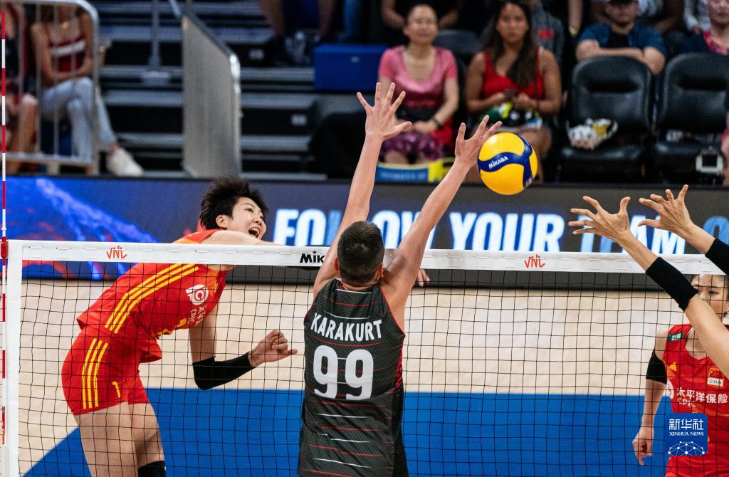 7月16日,中国队球员龚翔宇在比赛中扣球。新华社发(陈晨摄)