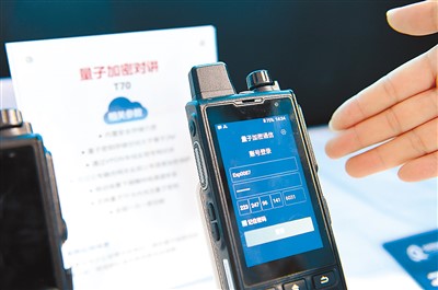 2022年9月4日,在北京,一家参展企业代表在2022年国家网络安全宣传周网络安全博览会上介绍量子加密对讲。 新华社记者 刘军喜摄