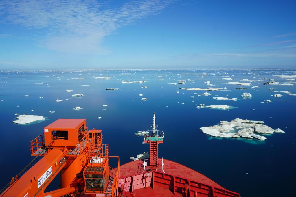 这是7月25日从“雪龙2”号极地科考破冰船驾驶台拍摄的景色。新华社记者 魏弘毅 摄