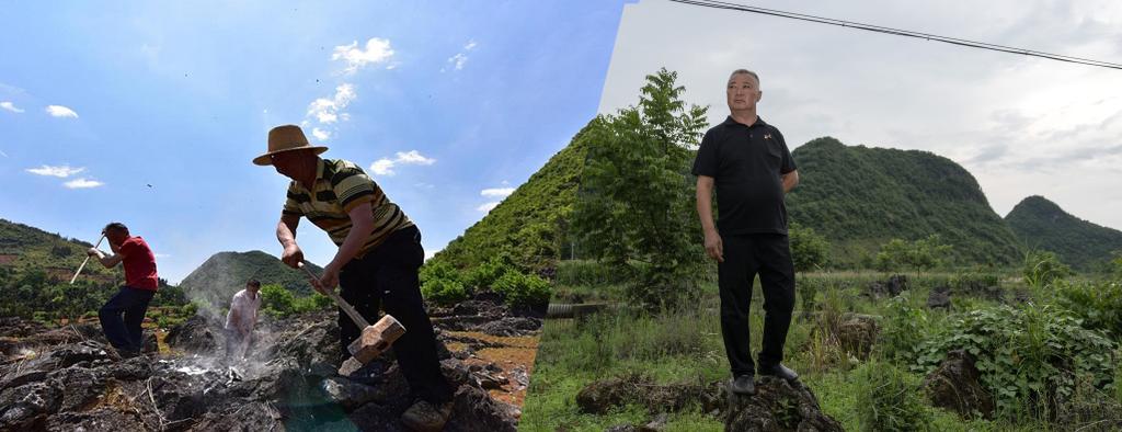 就在刘文政和伙伴们在山肚子里奋力掘进的时候,20多岁的木者村村支书刘登荣,也放响了改造石漠化土地的“第一炮”。