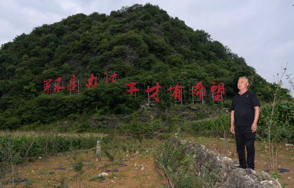 图为2023年7月27日,刘登荣站在当年自己和村民放响“第一炮”的土地上。新华社记者 费茂华 摄