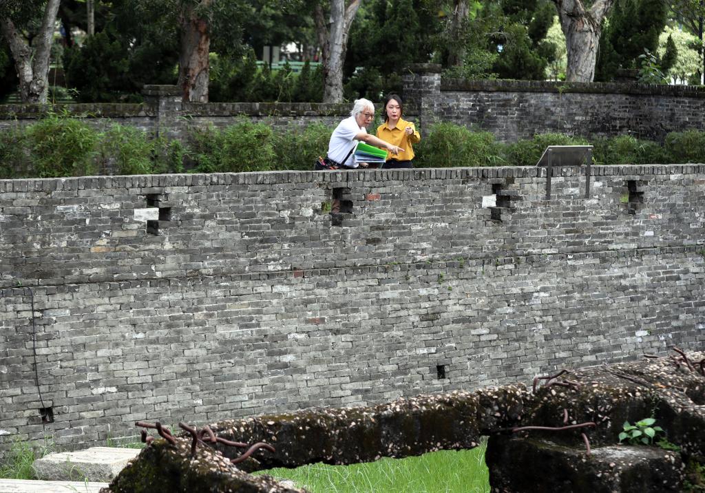 说话间,已到第一个重要点位——九龙寨城公园。这座江南风格的园林内,亭台楼阁与绿树流水间,还留存着九龙城寨作为晚清军事驻地的断壁残垣。