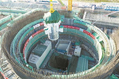 全球首个陆上模块化小型核反应堆“玲龙一号”核心模块在海南昌江吊装成功。受访单位供图