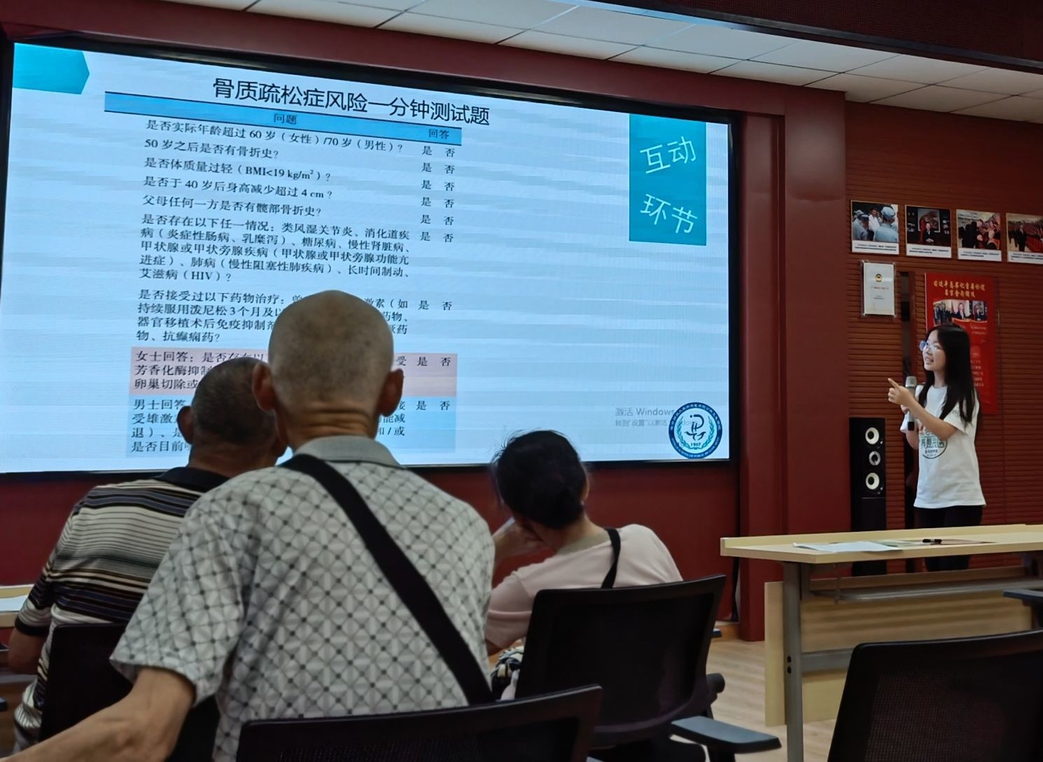 宣讲在基层,健康幸福家。实践队走进七个基层社区和一个养老中心,向老年朋友们宣讲健康科普知识。宣讲的内容涵盖了高血压、心脑血管疾病、骨质疏松、合理膳食、急救知识等多个方面,宣讲覆盖人数超过万人。通过通俗易懂的宣讲形式、精心准备的宣讲材料以及各种小奖品,吸引了大量老年居民的参与,也让他们对健康知识的接受度大大提高。实践队为老年居民们带去健康知识和关怀的同时也获得一致好评。