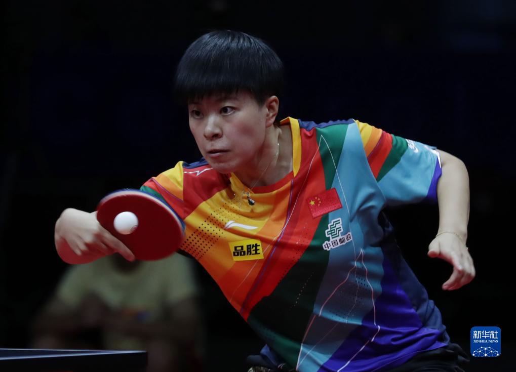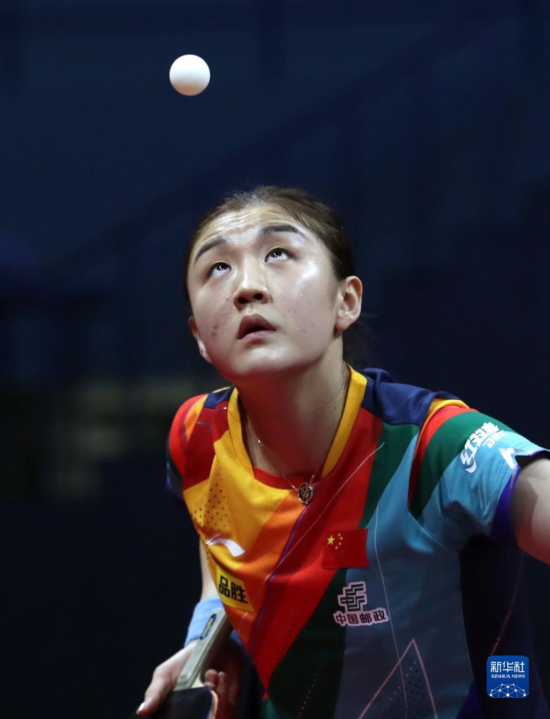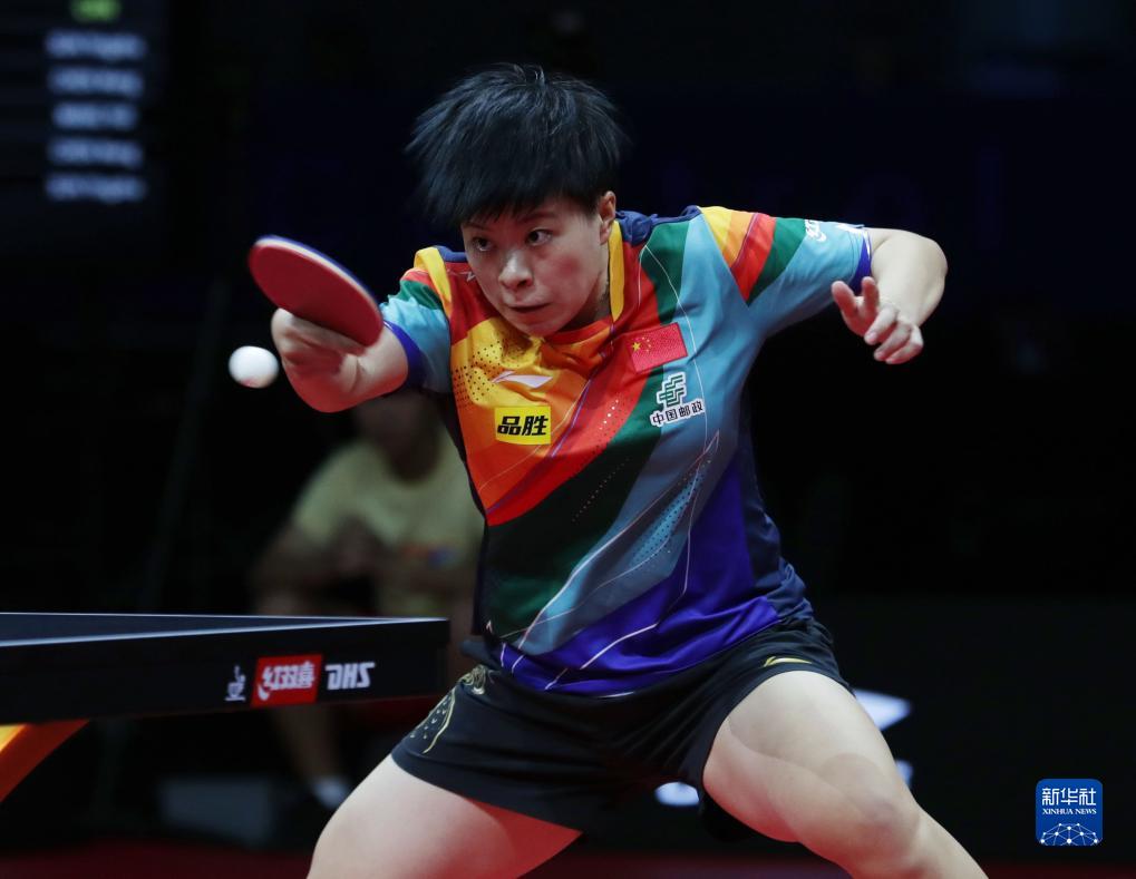 9月5日,中国队选手陈梦在比赛中回球。她以3比1战胜韩国队选手田志希。新华社发(李相浩摄)