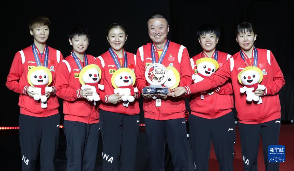 当日,2023年乒乓球亚锦赛女子团体赛决赛在韩国平昌举行。中国队以3比0战胜韩国队,夺得冠军。