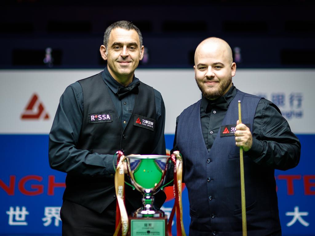 奥沙利文(左)与布雷切尔在决赛中。(图片来自世界斯诺克巡回赛官方微博)