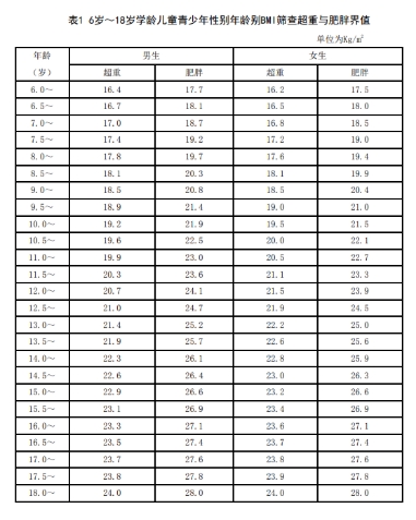 来源:中华人民共和国卫生行业标准《学龄儿童青少年超重与肥胖筛查》(WS/T 586-2018)