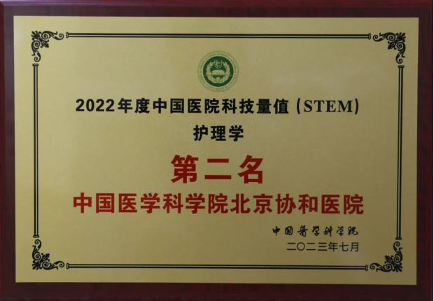 2022年度中国医院科技量值(STEM)护理学第二名