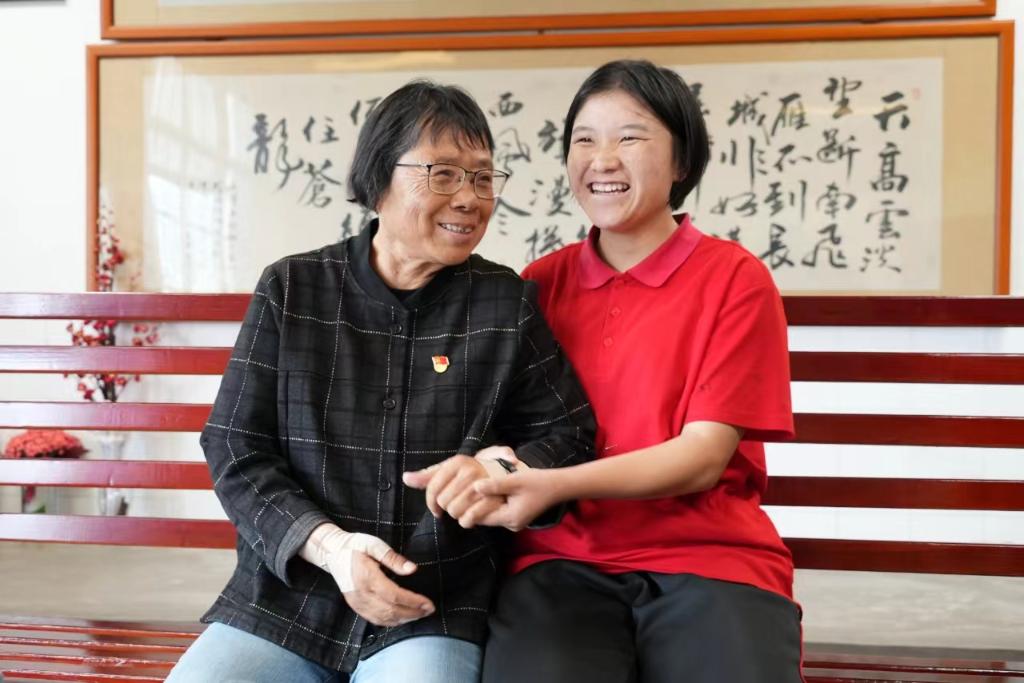 张桂梅与学生秀丽。(龙军摄)