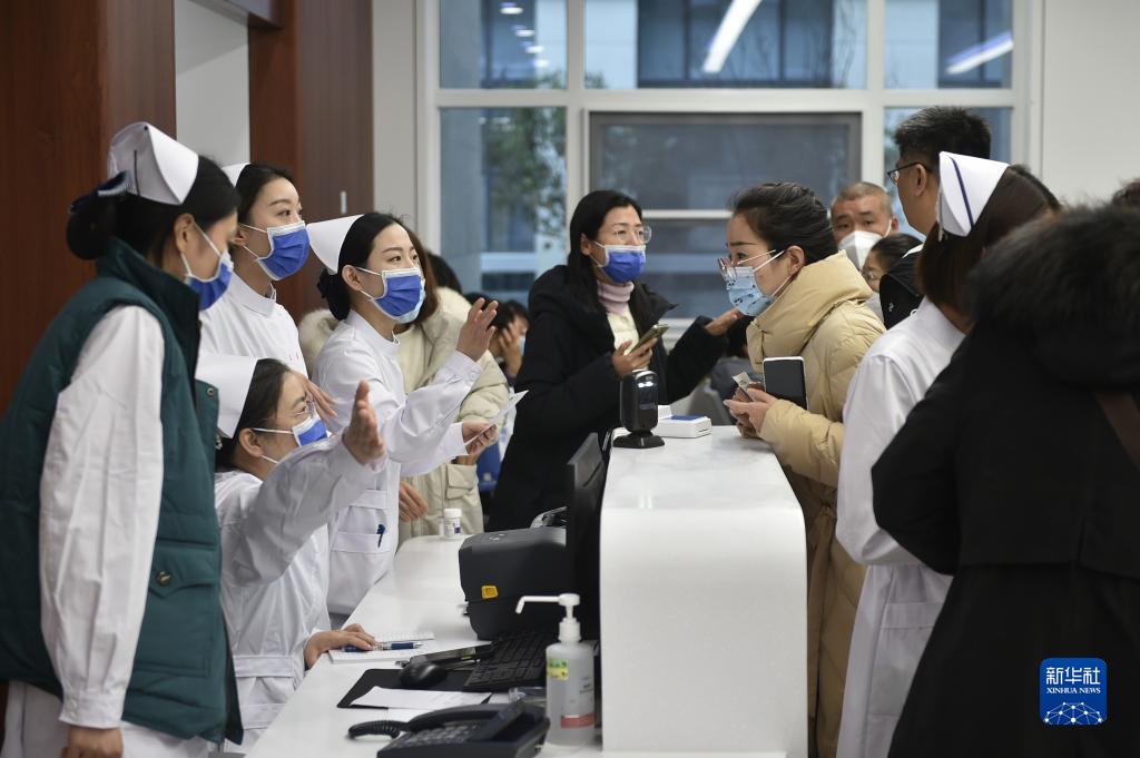 12月10日,工作人员在河南省人民医院北院区分诊台为患者提供导诊服务。