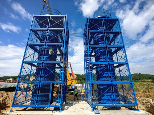在桥梁施工方面,项目部采用了装配式墩柱和盖梁作业平台,增强了作业平台的本质安全性,并统一了防护平台的规格。此外,梯笼在传统安全爬梯的基础上进行了技术改造,使用钢板冲制的安全网防护效果更佳。这些措施有效地避免了裸模施工和高处作业事故隐患。