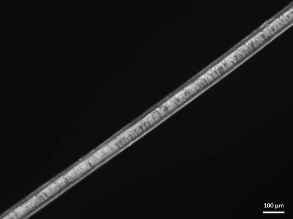 图为北极熊毛在光学显微镜下的照片。(图片由浙江大学提供)
