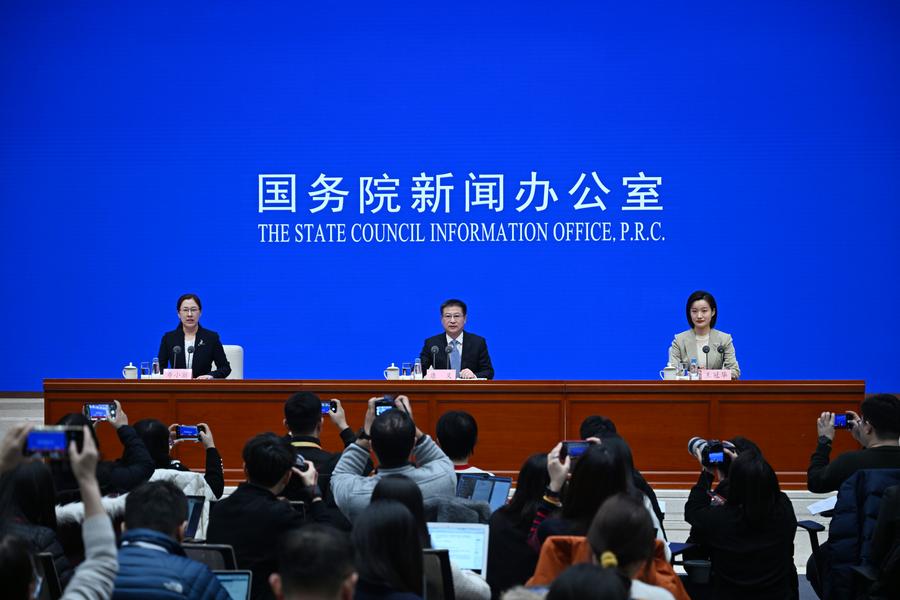 1月17日,国务院新闻办公室在北京举行新闻发布会,请国家统计局局长康义、国家统计局新闻发言人王冠华介绍2023年国民经济运行情况,并答记者问。新华社记者 金良快 摄