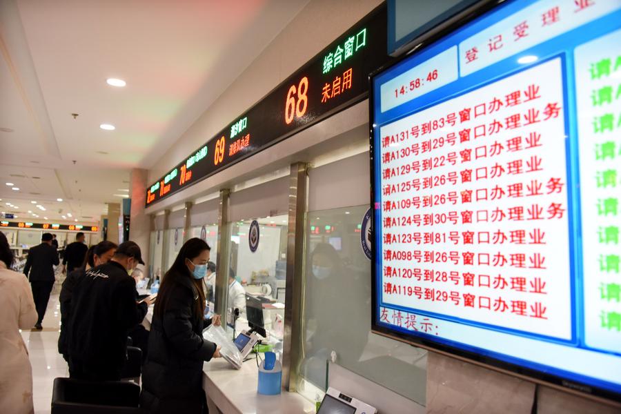 2023年2月23日,市民在青岛西海岸新区不动产登记中心办理不动产权证书。新华社记者 李紫恒 摄