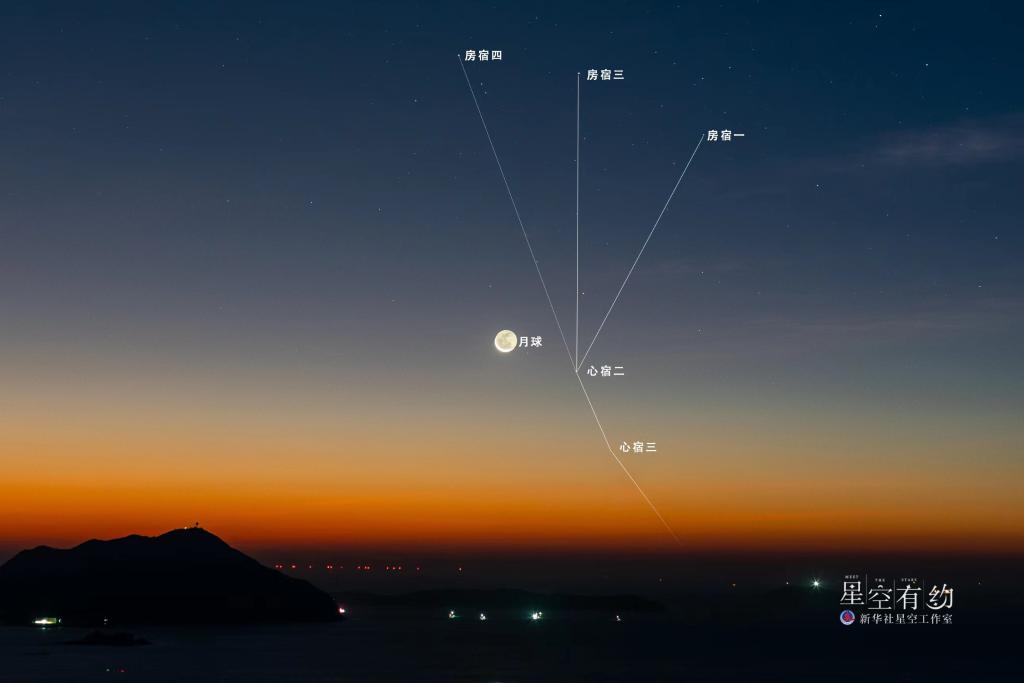 此次月掩心宿二时,月相为农历腊月廿六的残月,不至于过于明亮而影响对心宿二的肉眼观测;特别是掩终时,心宿二再现的过程更容易观测。而看不到掩星的地区,在凌晨的东南方低空可以看到一弯残月与微红的心宿二近距离相依相伴的场景。
