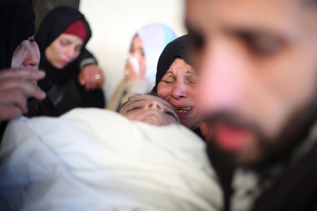 2月3日,在加沙地带南部城市拉法,巴勒斯坦人悼念死者。 新华社发(哈立德·奥马尔摄)