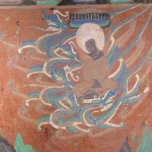 敦煌莫高窟第257窟的壁画,画中身姿矫健的五百大龙,驮着头顶华盖的佛弟子,从天空浩荡飞来……