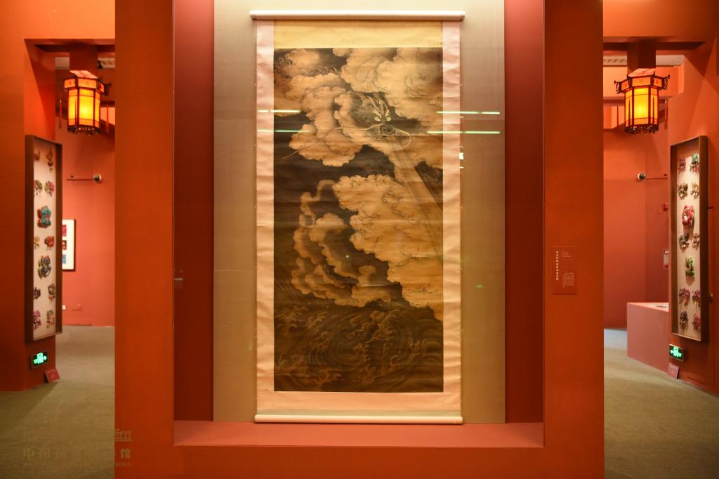 中国国家博物馆展出南天祥绢本指画墨龙轴(中国国家博物馆提供)。