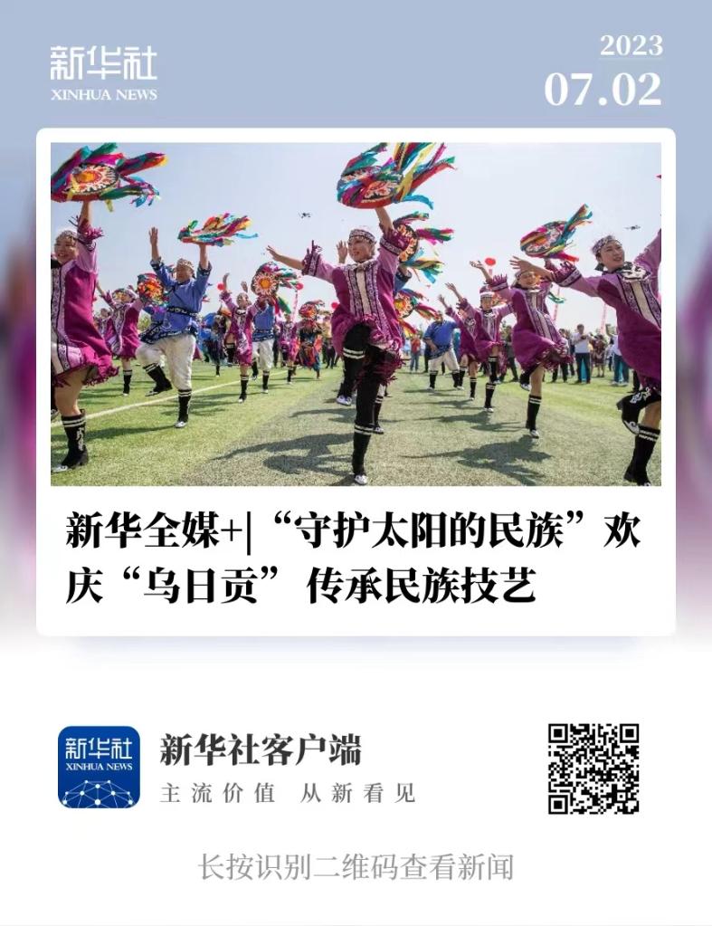 2023年7月2日,在第十一届赫哲族乌日贡大会现场,赫哲族选手身着传统服饰进行表演。