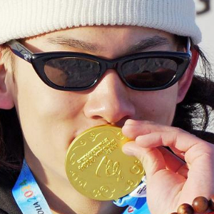 2月24日,冠军山西队选手苏翊鸣在颁奖仪式上亲吻金牌。新华社记者 李嘉南 摄