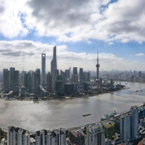 从上海虹口区北外滩空中俯瞰中国(上海)自由贸易试验区陆家嘴片区(2023年1月10日摄,无人机全景照片)。新华社记者 方喆 摄