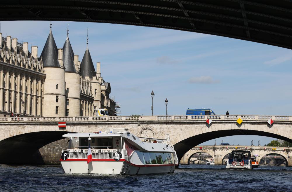 2023年7月17日,巴黎奥组委在法国塞纳河上进行了一场奥运会开幕式迷你彩排。新华社记者 高静 摄