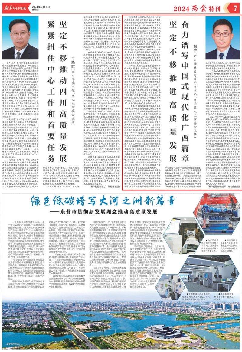 一年来,我们推动高质量发展迈出坚实步伐。坚持把推动高质量发展作为首要任务,年初即出台落实中央稳增长部署37条细化任务清单和加力振作工业经济28条,按月逐季调度分析,经济运行总体呈现持续向好恢复态势。一体推进教育、科技、人才综合改革,加快建设面向东盟的产教集聚示范区,连续两年迈入全国综合科技创新水平第二梯队。深入实施工业振兴三年行动,做好“原字号”“老字号”“新字号”“外字号”四篇强产业大文章,积极构建现代化产业体系,大力培育新质生产力,战略性新兴产业增加值占规模以上工业比重提高到20%左右。统筹推进沿边临港产业园区和中国—东盟产业合作区建设,加快构建跨区域跨境产业链供应链。平陆运河累计完成投资超260亿元,一条世界级运河雏形正徐徐展现在世人面前。大藤峡水利枢纽主体工程完工,黄桶至百色铁路开工建设,贵南高铁全线贯通运营,环北部湾广西水资源配置工程开工建设,广西海上风电示范项目全面启动,西部地区首台“华龙一号”核电机组投产发电,重大项目建设呈现提速提质态势。