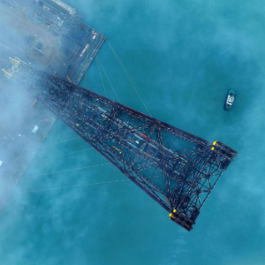 3月12日,“海基二号”导管架完工装船现场。中国海油供图