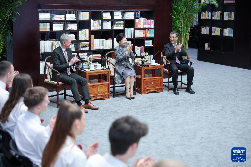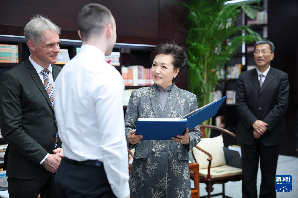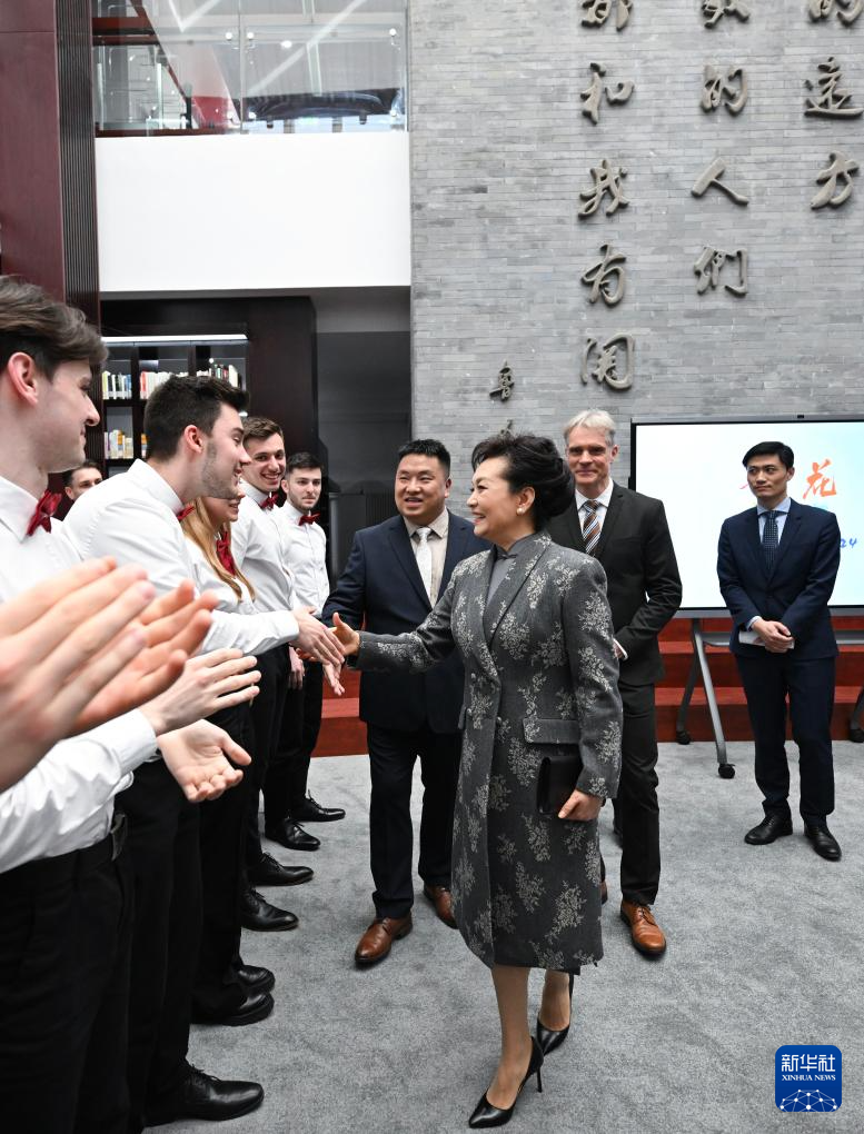 彭丽媛与师生们亲切互动,称赞同学们中文说得越来越好,表示相信这次中国之行将进一步加深他们对中国的了解,鼓励同学们回国后向家人和朋友分享在中国的见闻和感受,继续书写中德友谊佳话。
