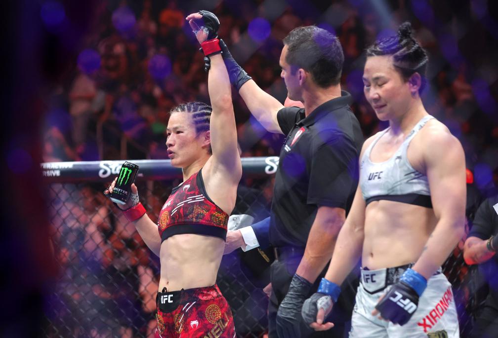 新华社华盛顿4月13日电 UFC(终极格斗冠军赛)在UFC冠军战历史上首次上演的“中国德比”中,张伟丽与闫晓楠联手奉献了一场极为精彩的比赛。两人打满五个回合,最终张伟丽经一致判定战胜闫晓楠,卫冕女子草量级金腰带。