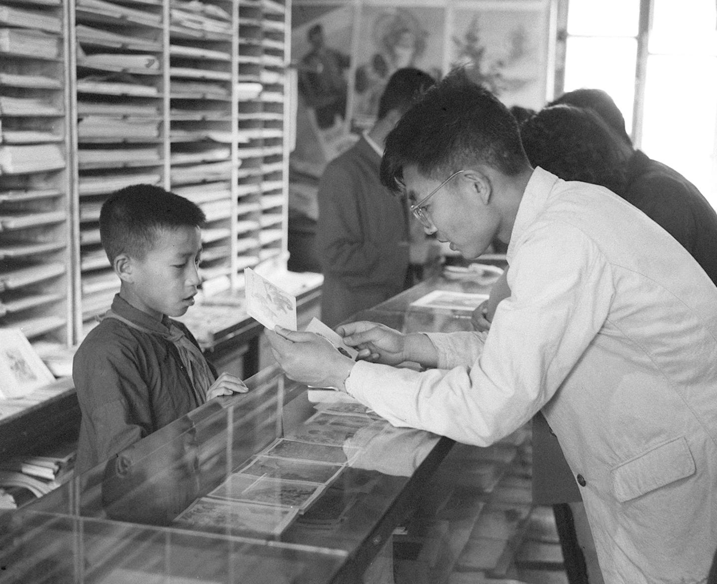 1957年,长春市实验小学少先队队员主动到新华书店图片画刊门市部当临时服务员,帮助书店解决了星期日购书人多、服务员少的困难。