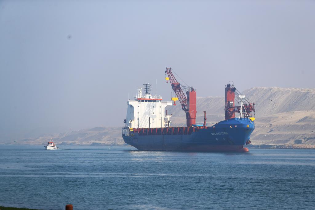 1月13日,在埃及伊斯梅利亚省,一艘轮船行驶在苏伊士运河上。新华社发(艾哈迈德·戈马摄)