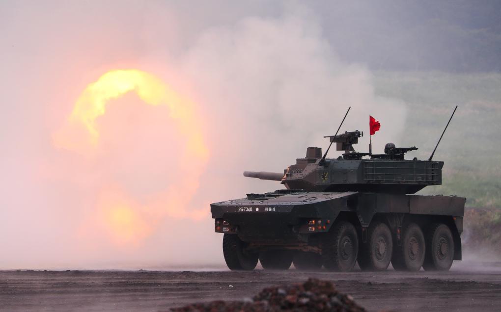 这是2018年8月26日日本陆上自卫队在静冈县东富士演习场举行2018年富士综合火力演习的资料照片。新华社记者杜潇逸摄