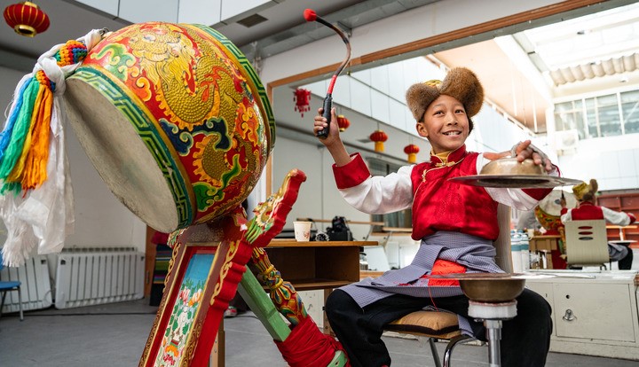 藏戏小演员为表演伴奏。新华社记者 丁增尼达 摄