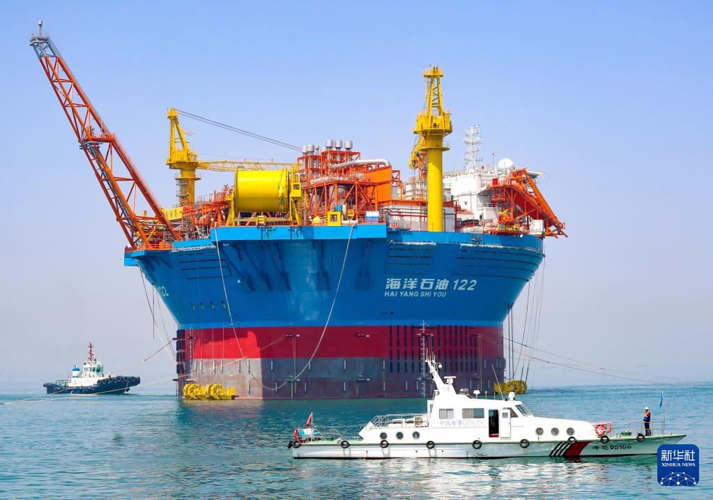 5月12日,由我国自主设计建造的亚洲首艘圆筒型“海上油气加工厂”——“海葵一号”从中国海油青岛国际化高端装备制造基地离港启运。 新华社发(张进刚 摄)