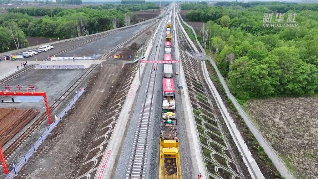记者从中国铁路哈尔滨局集团有限公司获悉,5月28日,在黑龙江省铁力市哈伊高铁铁力至伊春段铺轨施工现场,随着首对500米长钢轨铺设在有砟轨道道床上,标志着我国在建最北端高铁哈伊高铁正式进入铺轨施工阶段,为后续全线贯通奠定坚实基础。