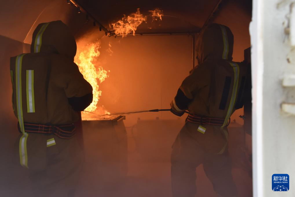 海军某潜艇支队官兵进行损管灭火训练(资料照片)。新华社发(茆琳摄)