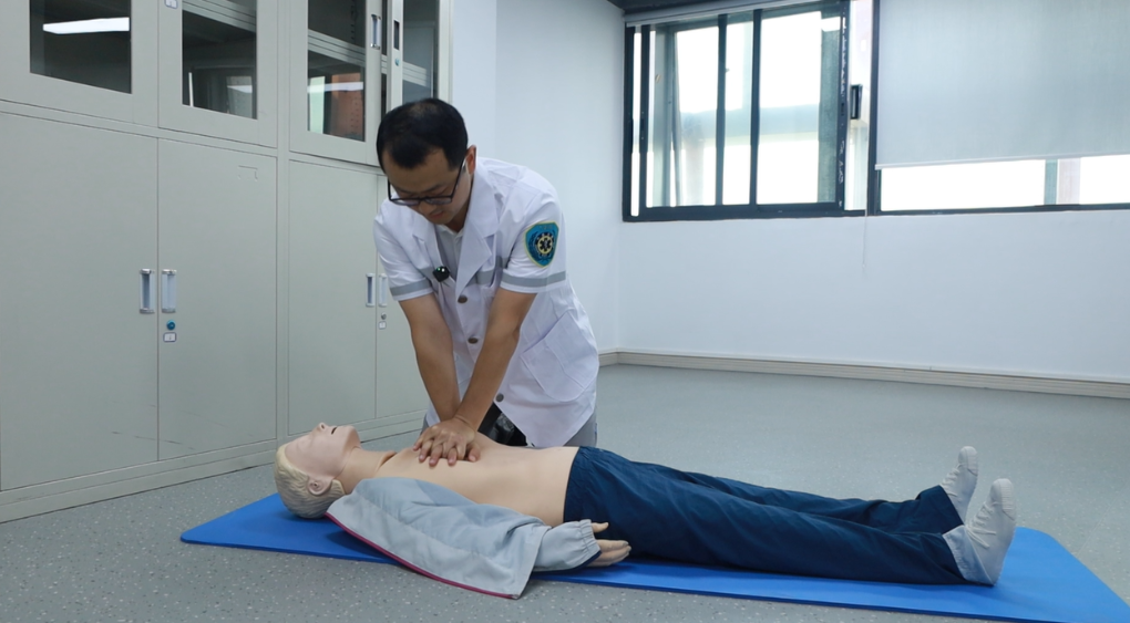 “在救护车来之前,实施正确的心肺复苏,能及时拯救生命。”四川省骨科医院应急管理科科长、副主任医师刘志刚介绍,心肺复苏一般有八个步骤:一是判断患者意识,可以轻拍患者肩膀,高声呼喊;二是觉察到患者无反应后,应立即高声呼救;三是将患者翻成仰卧姿势,放在坚硬的平面上,同时松开衣裤、松开腰带;四是判断呼吸,看患者胸部有无起伏,判断呼吸的时间不能少于5至10秒;五是判断脉搏,判断脉搏的时间也不能少于5至10秒;六是胸外心脏按压,按压部位是胸部正中两乳连接水平处,救护员应该双手掌根同向重叠,十指相扣,掌心翘起,手指离开胸壁,双臂伸直,上半身前倾,以髋关节为支点,垂直向下、用力、有节奏地按压30次,按压与放松的时间相等,下压深度5至6厘米,按压频率为100至120次/分钟;七是打开气道;八是口对口人工呼吸。