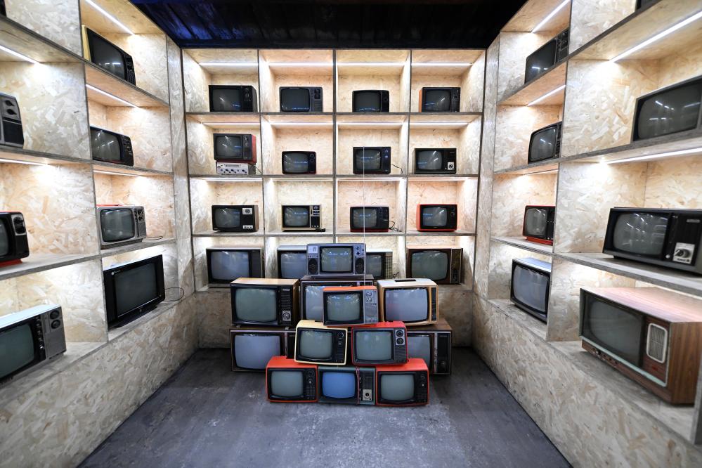 2024年7月10日拍摄的山西经纬Go Home艺术中心综合馆展出的电视机。