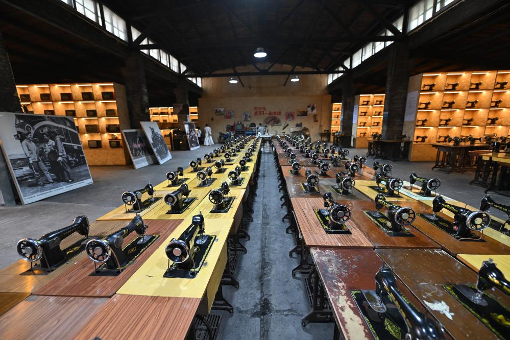 2024年7月10日拍摄的山西经纬Go Home艺术中心综合馆展出的缝纫机。