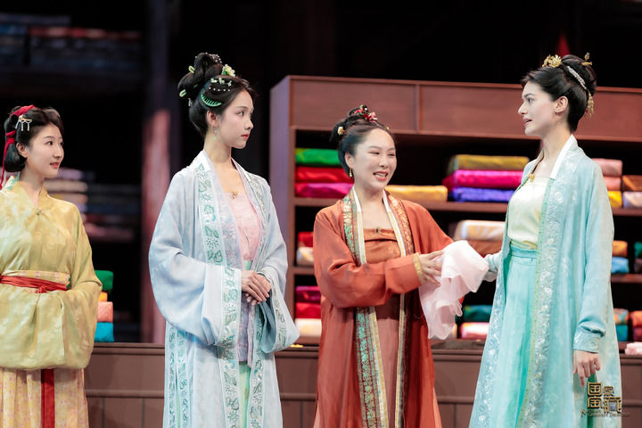 身着牡丹、海棠、梅花以及鸾凤纹饰的大袖袍,手持小扇……舞台上款款走向观众的南宋少女,却有着一副外国面孔。
