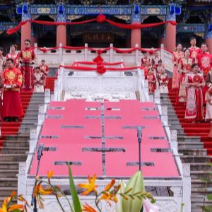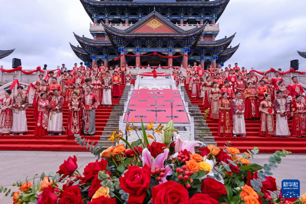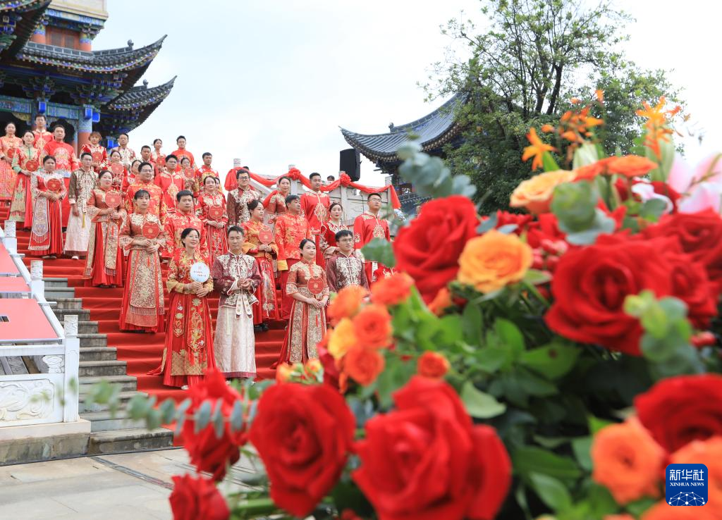 8月10日,在云南省保山市,新人参加“爱在七彩云南·情定温润保山”集体婚礼活动。