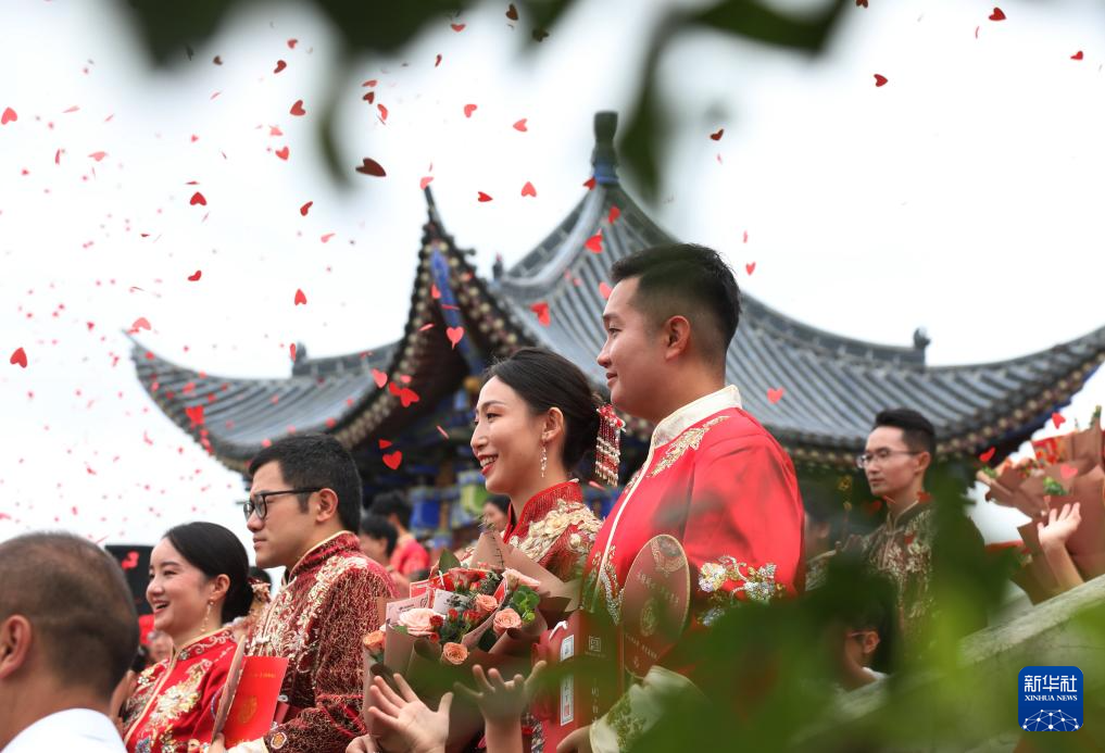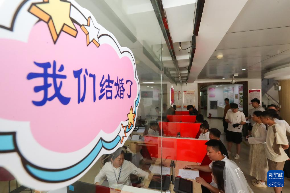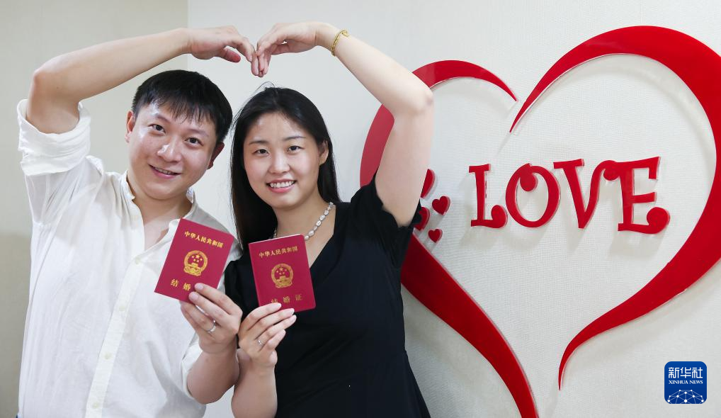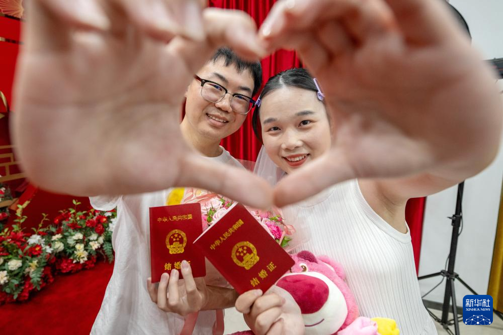 当日是七夕,许多新人选择在这一天登记结婚。