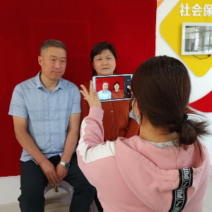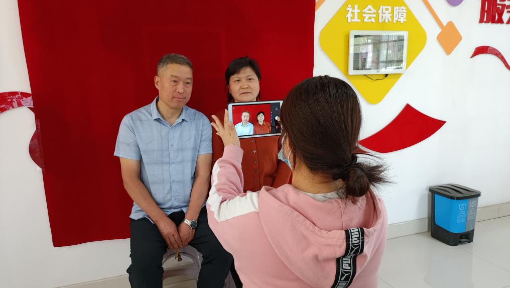 山东省东营市河口区民政局工作人员为老人们现场拍摄登记照片。(受访单位供图)