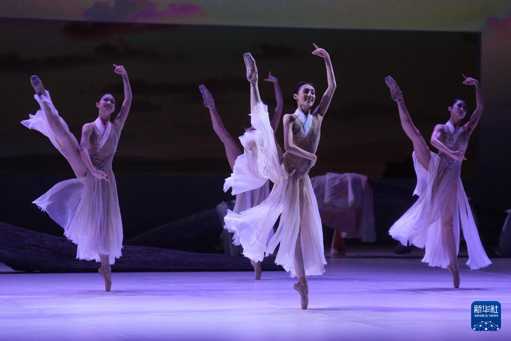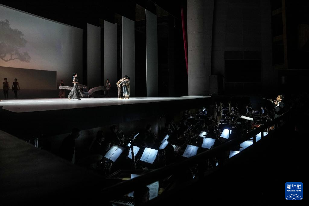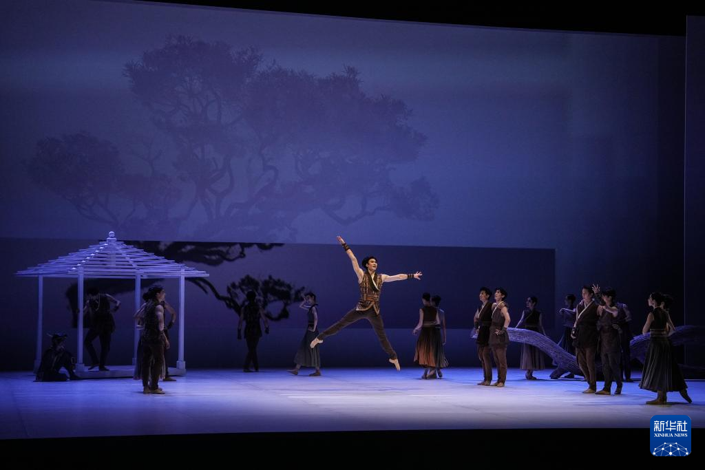 8月10日,在辽宁大剧院,辽宁芭蕾舞团的演员们在演出原创芭蕾舞剧《七夕》。