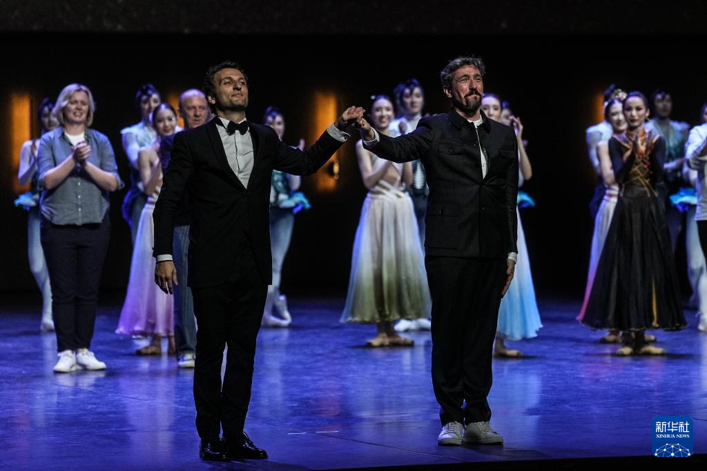 8月10日,法国编导马探·酾(右)和指挥维克多·雅各布向观众致谢。