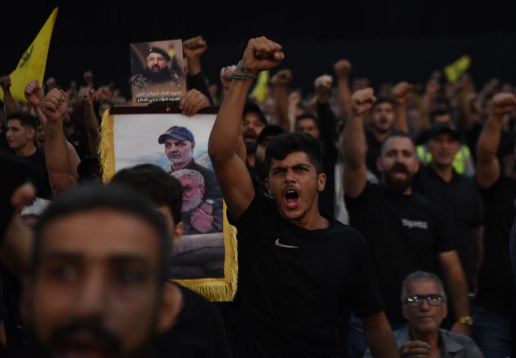 8月6日,在黎巴嫩首都贝鲁特,真主党支持者在纪念真主党高级军事指挥官福阿德·舒库尔的活动上呼喊口号。黎巴嫩真主党领导人纳斯鲁拉6日表示,将对以色列暗杀真主党高级军事指挥官福阿德·舒库尔的行为进行“强有力的报复”。新华社发(比拉尔·贾维希摄)